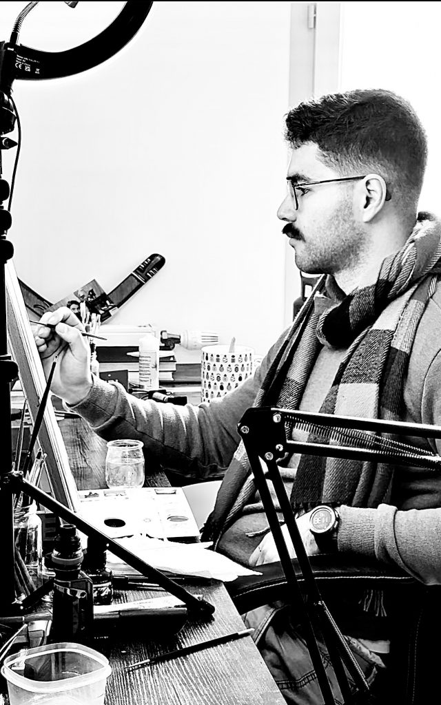 Passionné de dessin et de peinture depuis le plus jeune âge, il combine un goût pour l’observation et les mondes imaginaires.