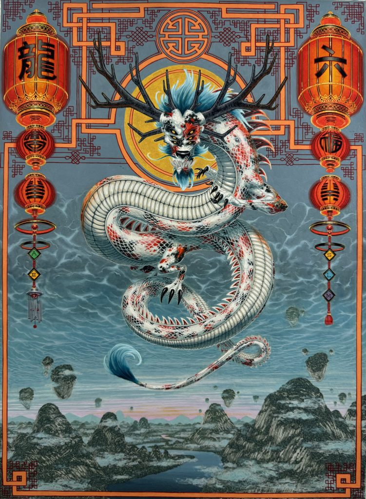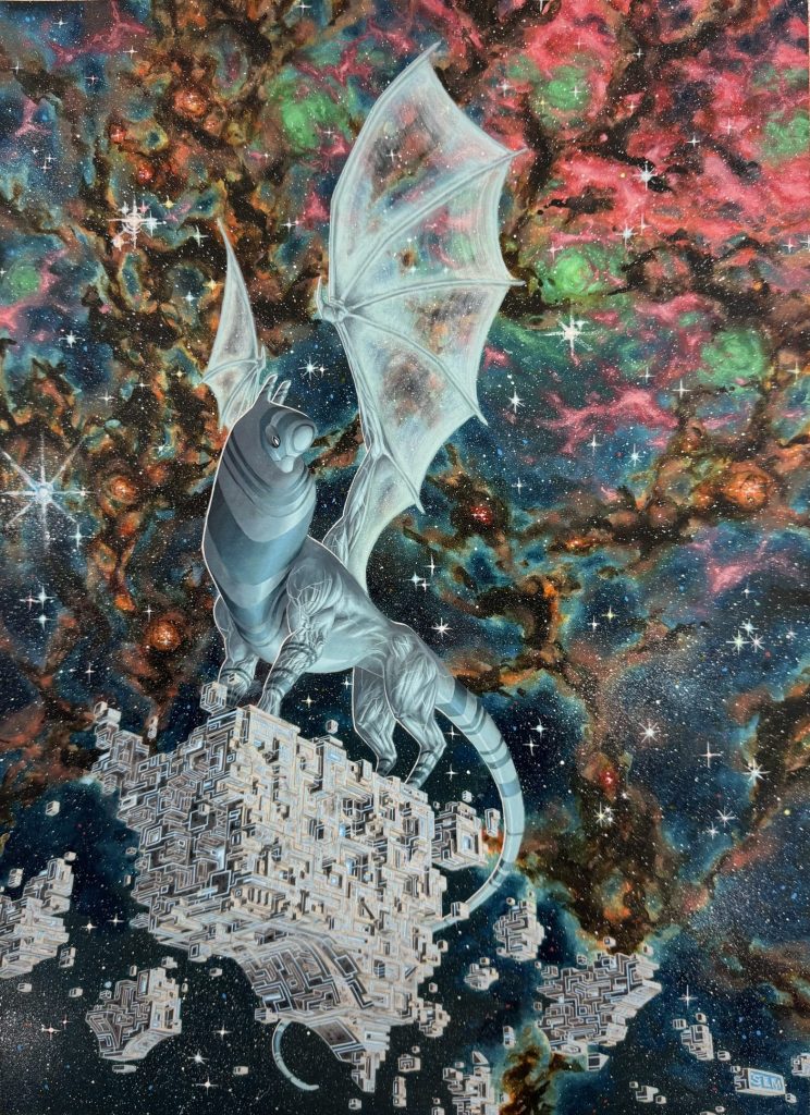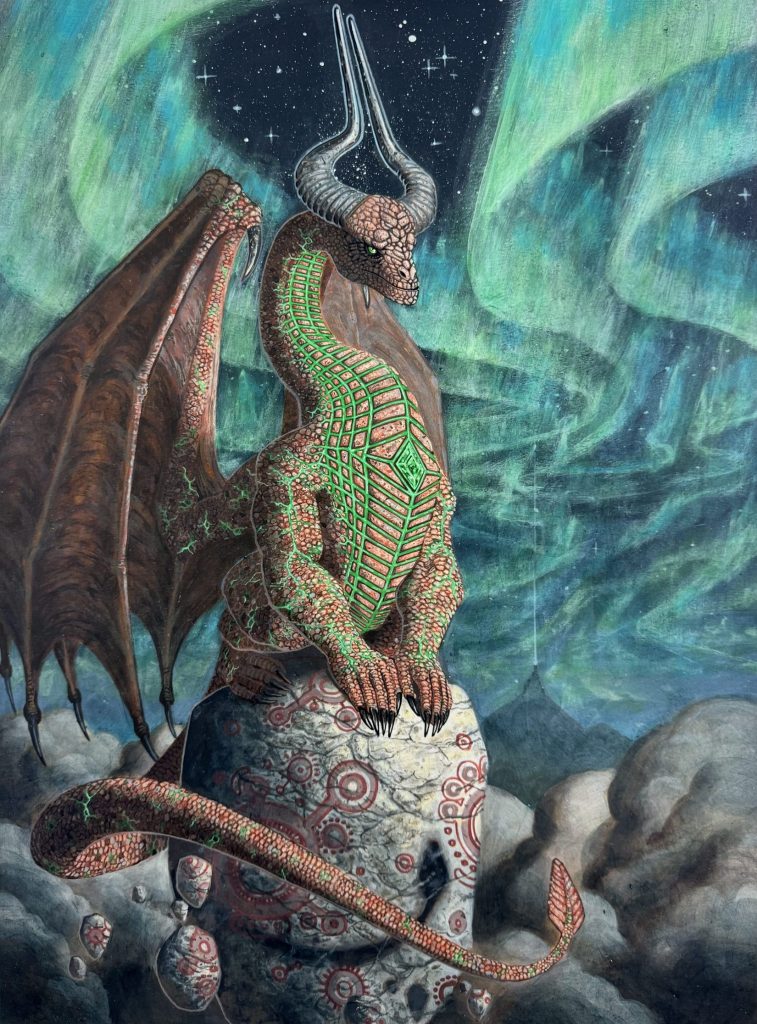 LA SERIE XII - DRAGONS Cette série constitué de douze peintures à l’acrylique s’inscrit autour d’un thème central : les dragons.Sofien Le Meur donne libre cours à son interprétation de cette figure mythique. Dragon 1 - Emeraude australe Dragon 2 - Magma Dragon 3 - Crinière tropical Dragon 4 - Avant le feu Dragon 5 - Chasse au papillon Dragon 6 - Année du Dragon Dragon 7 - Cosmos Dragon 8 - Symbiose Dragon 9 - Citadelle sombre